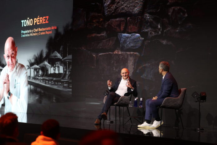 H&T, Salón de Innovación en Hostelería, ha celebrado hoy su segunda jornada como cita de referencia para los sectores hosteleros, hotelero y turístico del panorama nacional e internacional, con la alta gastronomía como protagonista y referente de excelencia. El cocinero extremeño con tres Estrellas Michelin Toño Pérez, propietario del restaurante Atrio, ha ofrecido una conferencia magistral en el Main Stage, en el marco de la clausura del VI Foro Nacional de Hostelería, organizado por la Federación de Empresarios de Hostelería de Andalucía y la Confederación Empresarial de Hostelería de España.